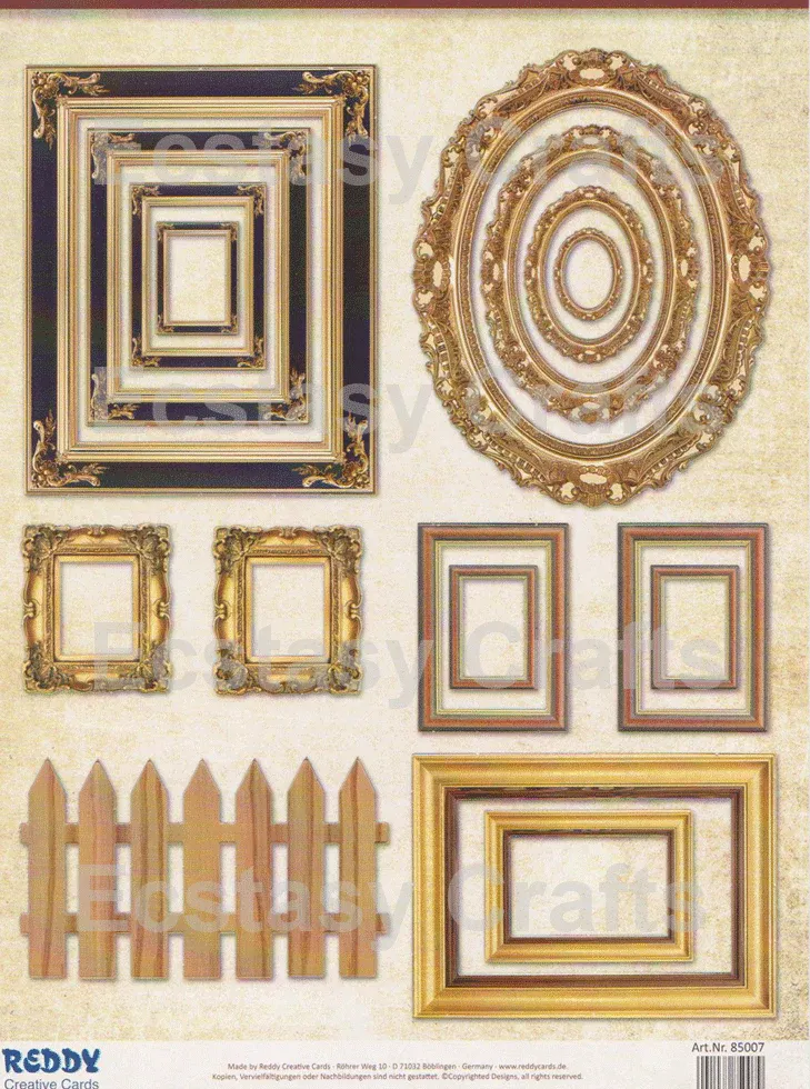 A4 sized smooth, matte cardstock, 250 gsm (heavy cardstock) Pre-punched card accessories of antique items. Can be used as accent pieces.