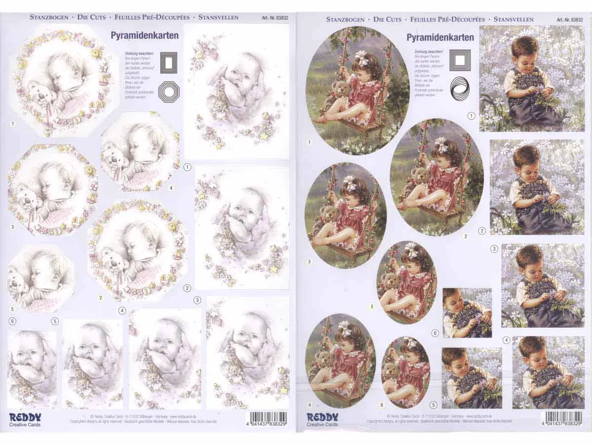These pyramid sheets are very beautiful, they come with 2 different sheets per package with 2 separate images on each. Each image has a unique shape and are put together by twisting slightly. Wonderful for cards or scrapbook pages, easy to create, simply press out and layer with foam tabs or 3d glue according to numbers.