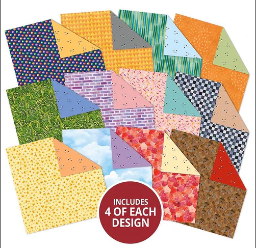 This Hunkydory Pun-tastic 8"x8" Paper Pad is a lively and cheerful addition to your craft collection, offering 48 double-sided pages of playful, high-quality designs. Printed on smooth 150gsm silk-finish paper, including 12 unique designs with 4 sheets of each, featuring fun patterns like stars, hearts, clouds, stripes, and dots on the front, and adorable smiley face prints in various colors on the back. Perfect for card making, scrapbooking, fussy cutting, and decoupage, these papers are easy to trim and ideal for creating backgrounds, borders, or accents. The vibrant, quirky style makes this pad suitable for a wide range of occasions and recipients, offering fantastic value as a complement to your topper sets.