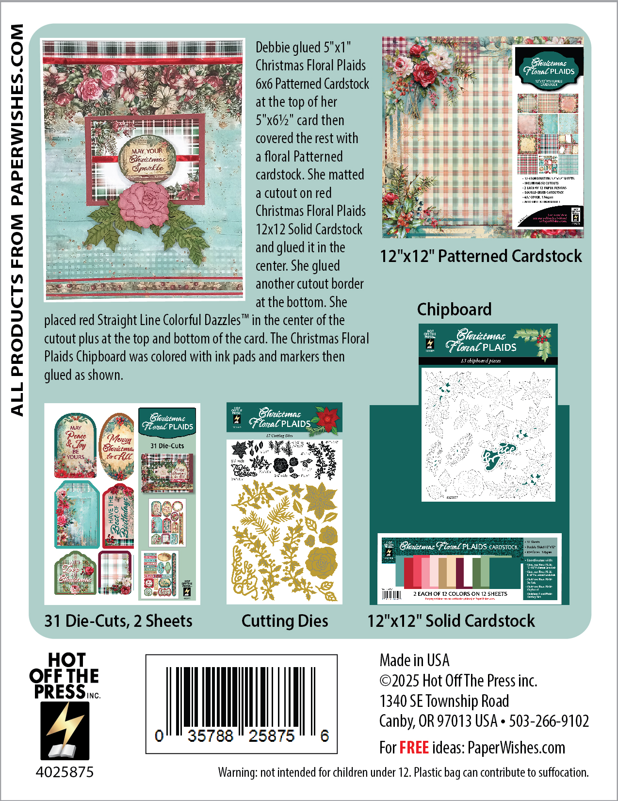 Christmas Floral Plaids 6x6 Patterned Cardstock from Hot Off The Press!