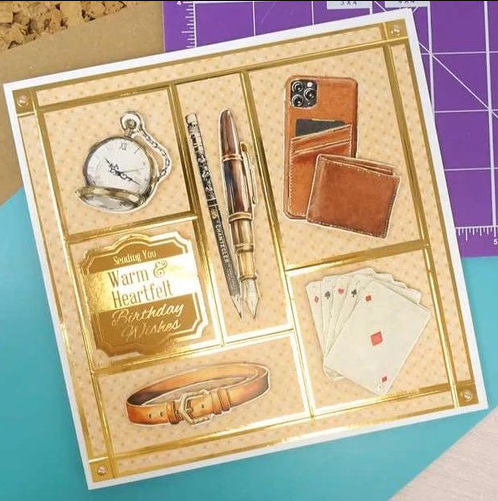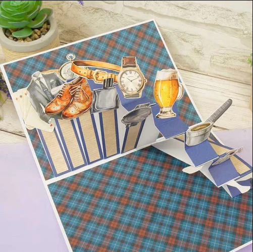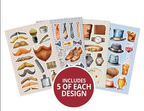 This stylish 20-page 5.8"x8.3" pad includes foiled and die-cut elements on sturdy 300gsm cardstock, featuring 4 unique page designs with 5 of each, giving you an impressive 325 individual die-cut pieces in total. You'll find a fantastic assortment of fancy male-themed accessories, including beards, moustaches, neckties, bowties, beer, watches, hats, and more, perfect for Father’s Day, birthdays, and any celebration of the men in your life. Every element is accented with Rich Gold foiling for that extra touch of sophistication for your card making and scrapbooking projects. Ideal as centrepieces, collage elements, or layered accents. Shape and build dimension with foam pads, silicone glue, or by hand-shaping, and create custom decoupage layers with the multiples included.