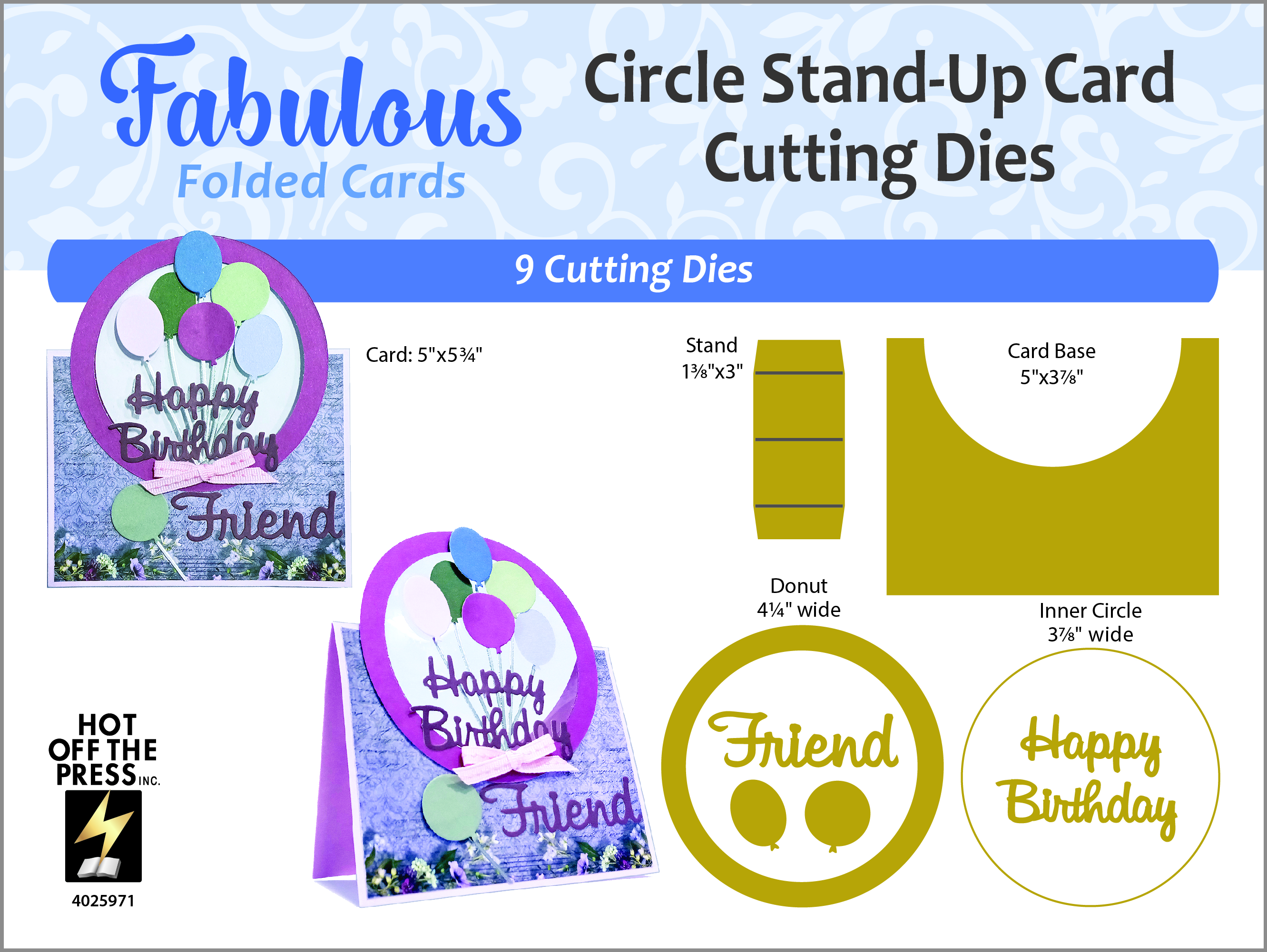 This 9-piece die set is designed to help you make foldover stand-up cards with circular focal points that pop up for an eye-catching display. Perfect for card making, scrapbooking, and mixed media, this versatile set lets you customize your cards with die-cut images, chipboard, Dazzles™ stickers, and more. Each piece works together to give your projects dimension and style while maintaining an easy-to-assemble format. Whether you're crafting for birthdays, holidays, or just because, this set makes it simple to achieve professional-looking results. Includes complete step-by-step instructions on the packaging, and the launch video provides additional inspiration to get you started! Use with