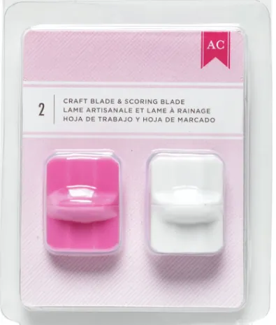 This pack of 2 trimmer blades includes 1 craft blade and 1 scoring blade, perfect for effortlessly cutting or scoring your card making and scrapbooking projects. Craft and scoring blades let you get creative with the way you cut paper! These fun blades are for use with American Crafts 9"" or 12" blade trimmers. Replacing your blades regularly ensures accuracy and smooth results every time. Whether you're crafting cards, layouts, or DIY projects, these essential tools help maintain peak performance. American Crafts trimmer