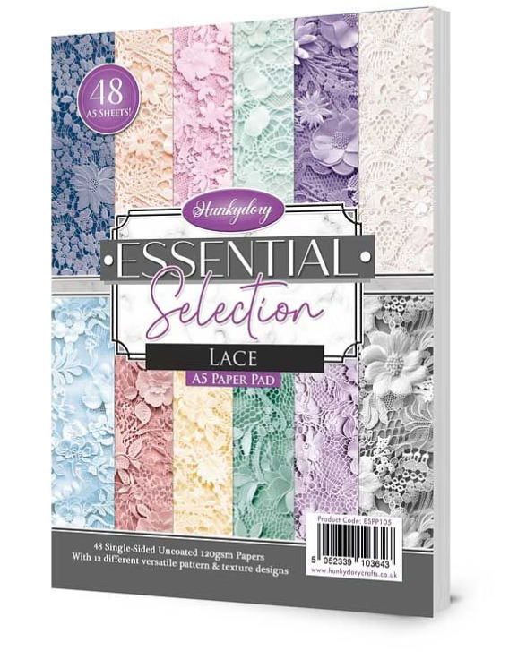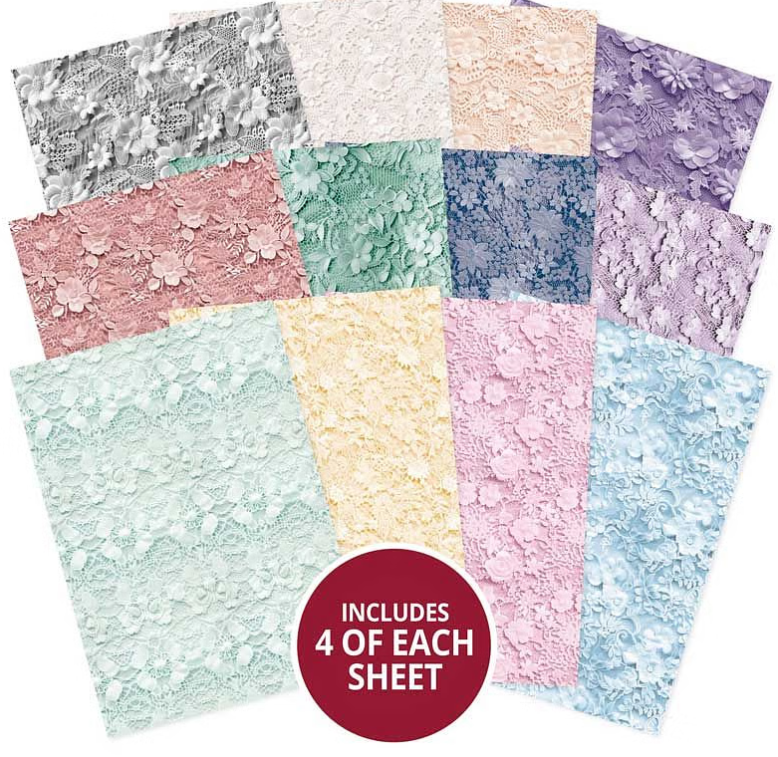 This 5.8"x8.3" pad features 48 single-sided sheets of 140gsm matte paper, showcasing 12 soft lace-inspired designs in a range of pastel and neutral tones, with 4 sheets of each design. Perfect for card making, journaling, scrapbooking, and mixed media, these papers offer delicate texture and vintage charm without adding bulk. A must-have staple for romantic, shabby chic, or feminine-themed creations. Infuse your projects with timeless elegance using the Lace Essential Selection Paper Pad.