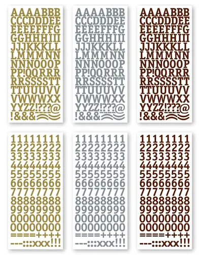 This collection includes 6 Peel Offs Stickers sheets measuring 4"x9" and featuring uppercase letters A–Z and numbers 0–9 in mirror gold, mirror silver, and mirror copper finishes. With 3 sheets dedicated to letters and 3 sheets to numbers, these metallic peel-offs are perfect for adding elegant titles, dates, or custom messages to card making, scrapbooking, journals, and other paper crafts. Made in the Netherlands, these stickers bring a timeless metallic elegance to any creative endeavor. Add classic shine and personalization to your projects with the ABC’s & 123’s Peel Off Stickers collection.