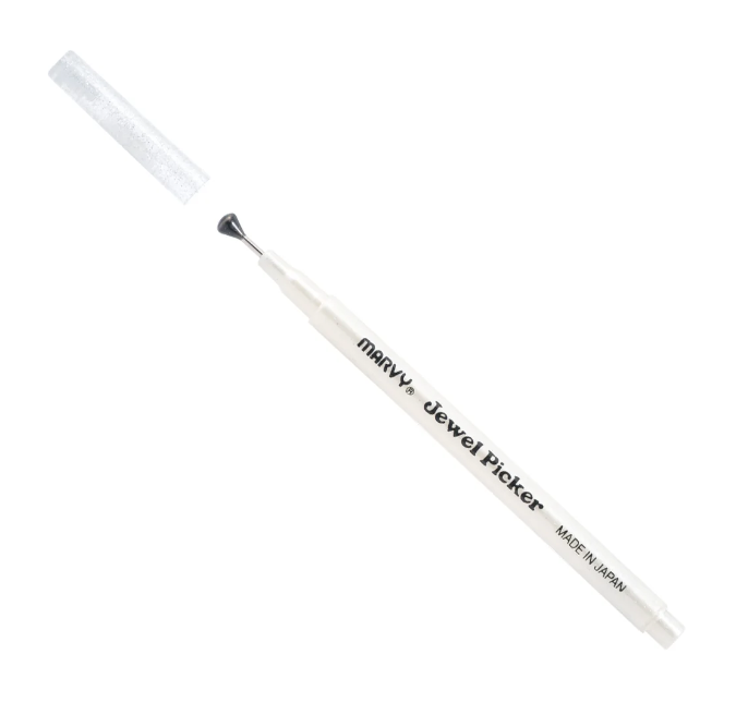 Jewel Picker Jumbo Tip from Marvey® Uchida! This Jewel Picker Jumbo Tip is a handy tool designed to make picking up and placing small embellishments effortless. Whether you're working with tiny jewels, beads, rhinestones, gems, glitter, confetti, or punchouts, this tool provides an easy and precise way to handle delicate details without the hassle of tweezers. Perfect for detailed card making and scrapbooking projects, the jumbo tip offers better control and grip, making your creative process smoother and more enjoyable. We love it for jewel Dazzles™.