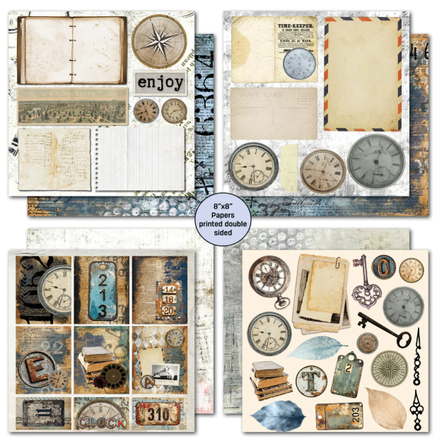 This Eclectic Clocks 8"x8" Paper Pack includes 12 double-sided sheets printed on sturdy 300 gsm cardstock. Designed to add depth to your paper creations, this collection features a rich color palette of browns and blues that evoke a timeless, masculine vintage vibe. The pages offer texture and subtle design, making them both elegant and versatile. Ideal for scrapbooking, card making, mini albums, and mixed media projects, these high-quality papers provide endless creative possibilities.