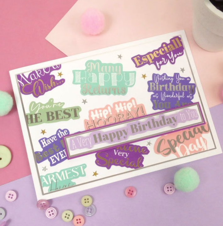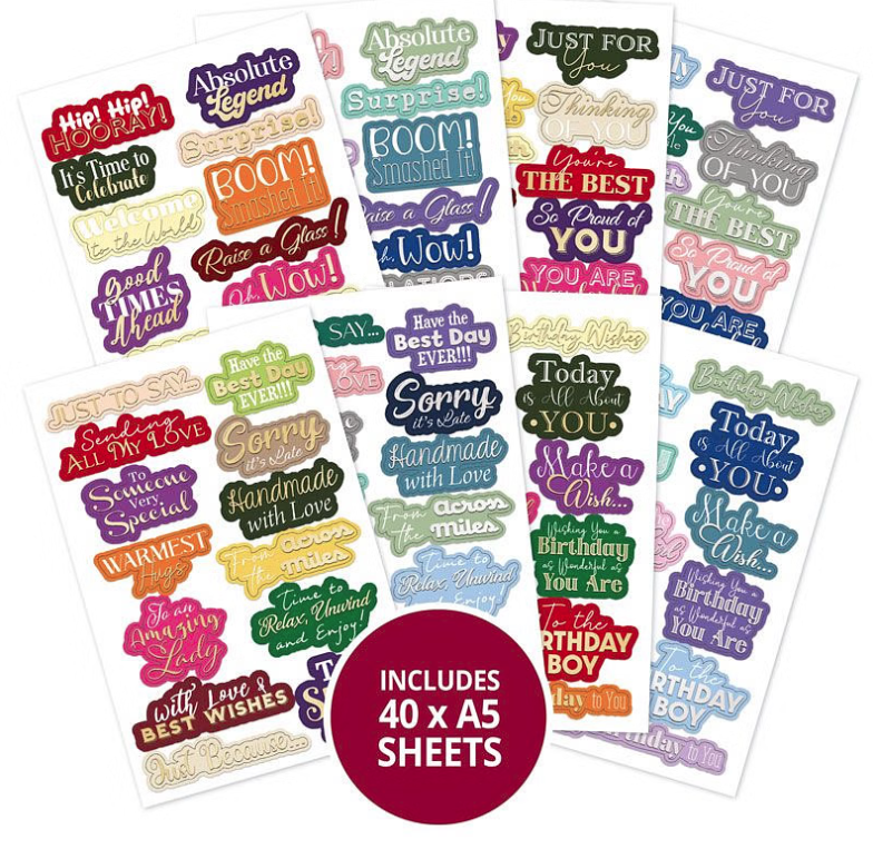 530 die-cut sentiments in assorted shapes