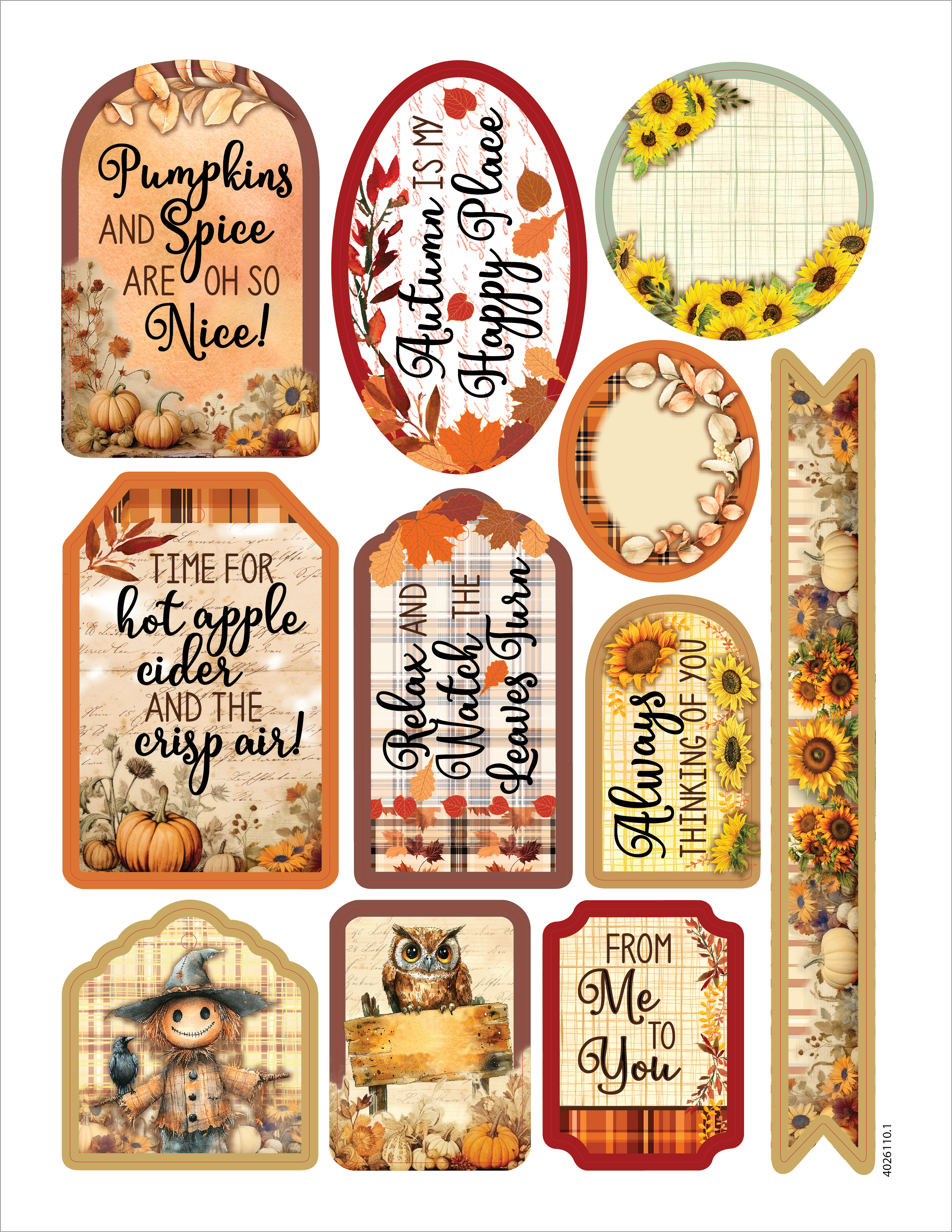 Celebrate the cozy spirit of fall with this delightful set of 31 Plaids & Pumpkins Die-Cuts. Featuring warm autumn hues, playful plaid patterns, friendly owl, charming scarecrow and charming pumpkin motifs, these die-cuts are perfect for card making and scrapbooking Each pre-matted piece is designed to coordinate beautifully with other Plaids & Pumpkin fall-themed papers and embellishments, making it easy to craft heartfelt projects that capture the magic of the season.