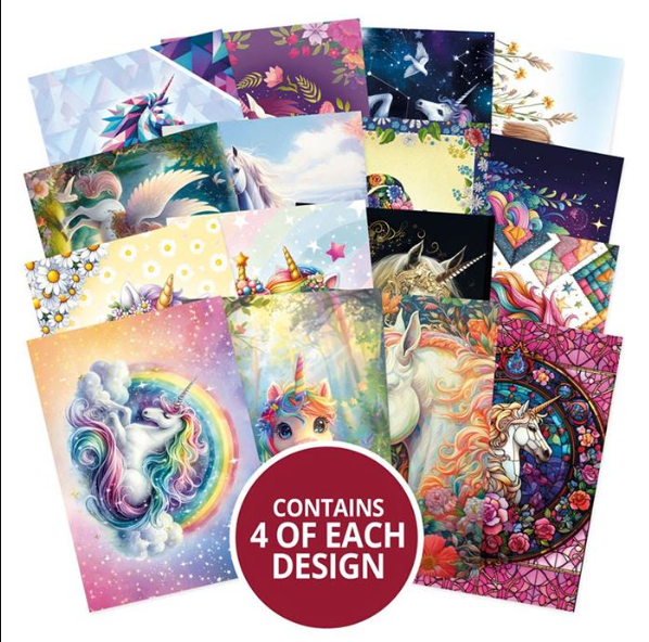This magical 2.9"x4.1" paper pad includes 64 colour-printed sheets on 150gsm paper, featuring 4 sheets each of 16 enchanting designs. Adorned with whimsical unicorns, rainbows, castles, and glittery skies, each sheet is perfect for decoupage, card fronts, tags, or as a focal point in your magical-themed crafts. Whether you're crafting for a birthday, a fairy tale scene, or just love a bit of sparkle, this pad brings pure fantasy to every card making and scrapbooking project. Step into a world of sparkle and wonder with the Unicorn Kingdom Pocket Pad!