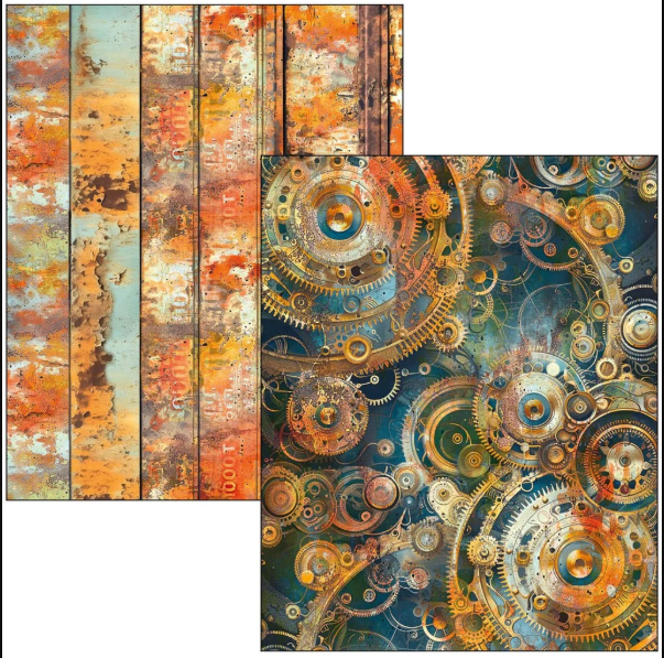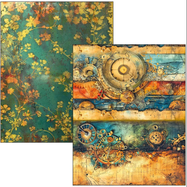 This 8.3"x11.7" Past Time Mixed Media Book Maxi is a beautifully curated collection perfect for mixed media, scrapbooking, journaling, and card making. Featuring 50 double-sided 8.3"x11.7" sheets printed on high-quality 140gsm cardstock, this Italian-designed pad includes 39 patterned pages and 11 ephemera sheets to help you create cohesive and captivating projects. The versatile paper weight makes it easy to cut and layer, while the richly detailed designs with steampunk, vintage travel, clocks, and weathered textures evoke a nostalgic journey through time. Ideal for crafters of all levels, this book offers both inspiration and quality in one stunning package. Lu Mania is the name of Ciao Bella's mixed media products.
