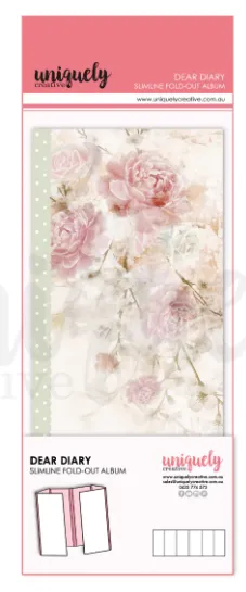 Capture your precious memories with the stunning Dear Diary Slimline Fold-Out Album from Uniquely Creative. Measuring 4.25"x8.8" when folded. Tthis elegant album is printed on high-quality 300gsm cardstock. Featuring interactive printed pages ready for customization, it's perfect for scrapbooking, card making, crafters, and art enthusiasts. Designed to coordinate beautifully with the Dear Diary collection, this fold-out album offers a stylish and sturdy base to bring your creative vision to life.