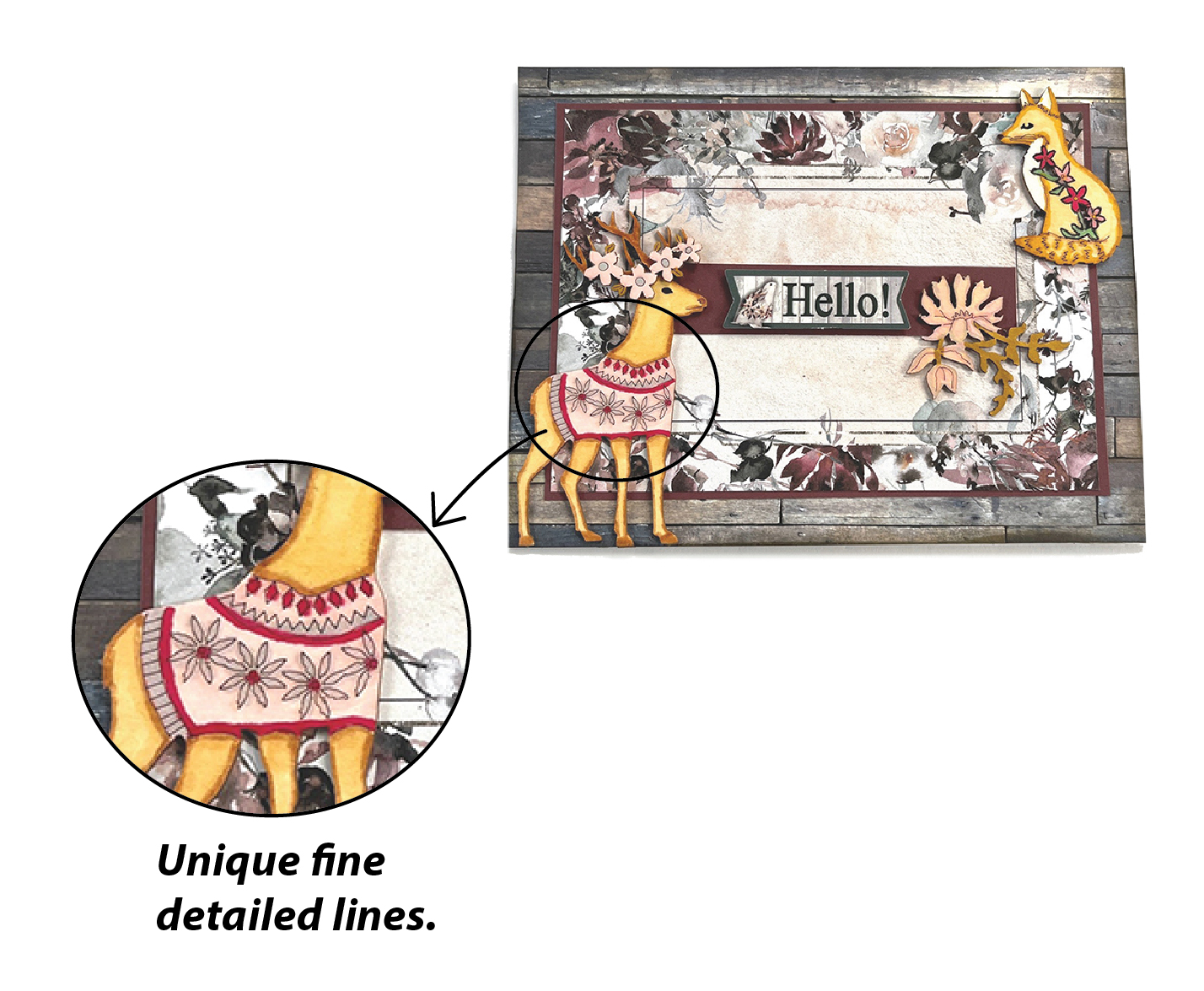 Designs include: fox, owl, deer, pine trees, branches, florals, and foliage