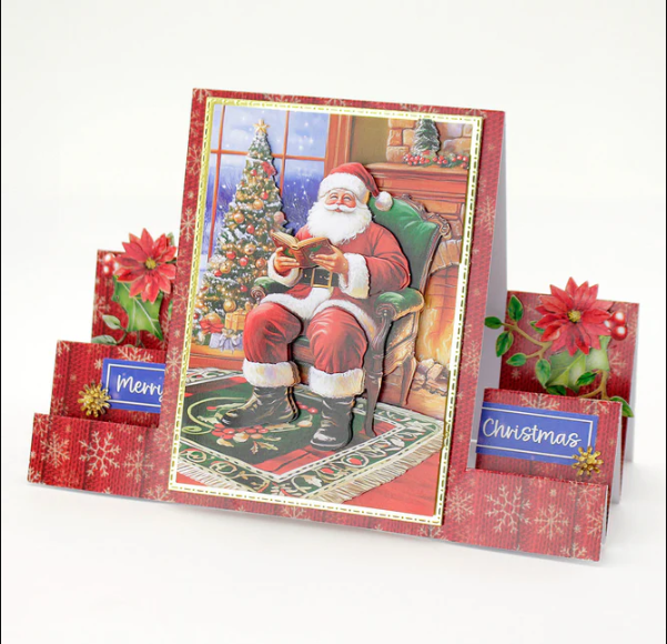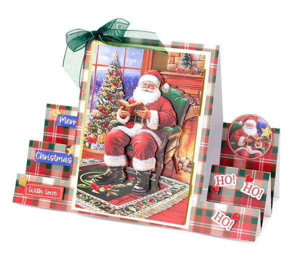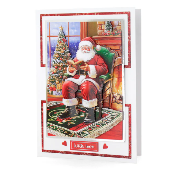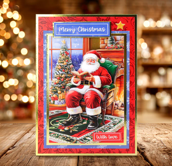 This set includes 3 identical pre-cut decoupage sheets, printed on high-quality 150gsm paper. Each sheet measures 8.3"x11.7". Just pop out the pieces and foam tape them to create a beautifully dimensional topper, no scissors required! This charming scene features Santa Claus at home, relaxing in his favorite armchair beside a glowing fireplace, enjoying a quiet moment with a good book. A beautifully decorated Christmas tree twinkles nearby, while a large window reveals a peaceful snowy night beyond, adding to the cosy, storybook charm of this design. Perfect for crafters of all skill levels, this pack also includes coordinating sentiments to help you share heartfelt holiday wishes with a personal touch. Perfect for card making and scrapbooking, festive journals, and cosy winter crafts. Made in the UK!