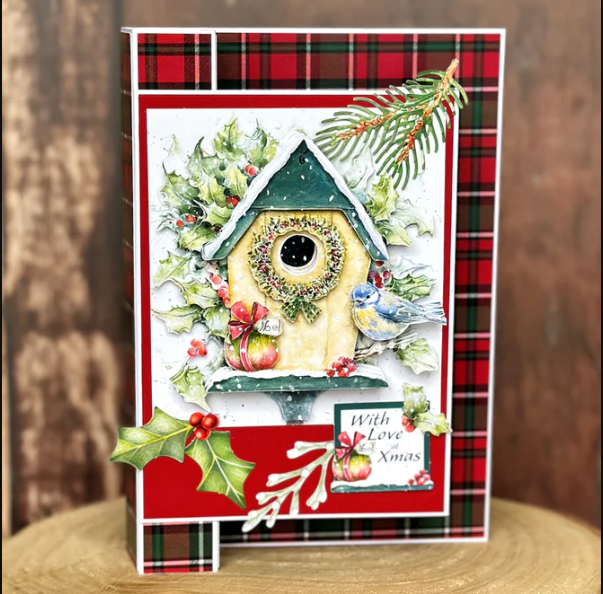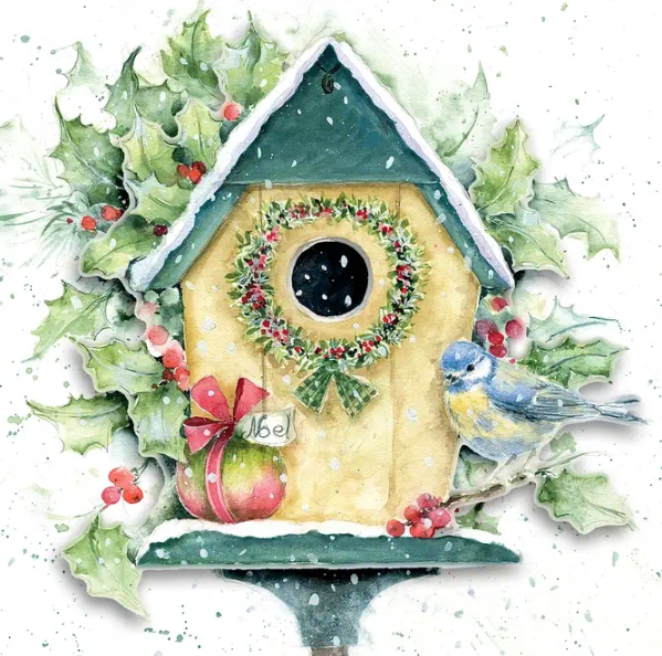This set includes 3 identical sheets each measuring 8.3"x11.7" printed on high-quality 150gsm paper, featuring a cozy birdhouse surrounded by holly, bluebirds, pinecones, and ribbon details. Ideal for quick makes, last-minute card making, or enhancing scrapbooking layouts and seasonal journals. Add a festive touch to your handmade cards and crafts with this charming Christmas Birdhouse 3D Die-Cut Decoupage Set.