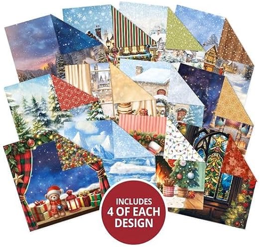 This 8"x8" festive paper pad includes 48 sheets of 150gsm coated silk-finish paper, 4 sheets each of 12 designs, perfectly coordinated to complement Hunkydory’s Decoupage Toppers. The fronts feature stunning Christmas scenes, from cosy indoor windows and magical winter wonderlands to festive villages, snowy gardens, Arctic views, and joyful holiday feasts, ideal for creating complete decoupage scenes, 3D dioramas, or simply enhancing card making, scrapbooking, and seasonal projects.