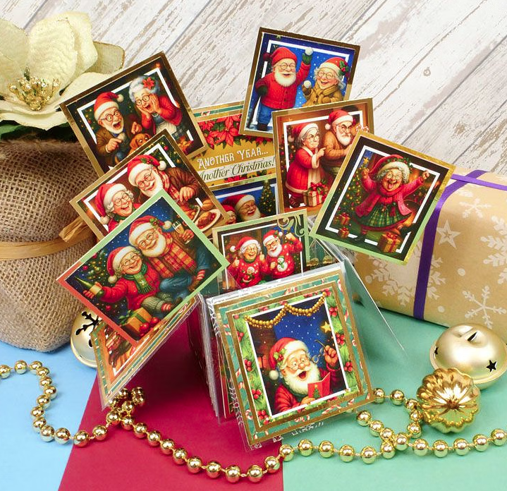 Golden Oldies Festive Fun Picture Perfect Pad from Hunkydory! The Golden Oldies Festive Fun Picture Perfect Pad is a 48-page 8"x8" double-sided paper pad printed on 150gsm paper. It features 12 playful and nostalgic designs, with 4 sheets of each. Filled with humorous and heartwarming Christmas imagery, this pad is perfect for card making, scrapbooking, gift tags, and festive paper crafts. Each sheet has a coordinating reverse side, allowing for versatile layering and background options that add a fun retro charm to your holiday projects.