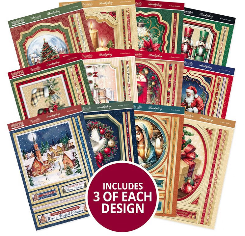 Celebrate the magic of tradition with this luxurious topper pad, brimming with rich reds, gleaming golds, and timeless holiday imagery. Designed for bold, beautiful cards and festive papercrafts, these oversized toppers make a statement with ease.