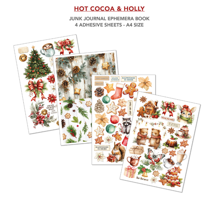 Warm up your winter crafting with the Hot Cocoa & Holly Junk Journal & Ephemera Book by Ciao Bella. This 32 page A4size collection on 120gsm paper is brimming with cozy mugs, holly sprigs, and festive textures—perfect for holiday card making and seasonal journaling.