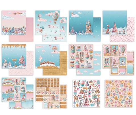 This enchanting collection includes 10 double-sided 8"x8" sheets printed on premium 190gsm cardstock. Overflowing with charm, the designs feature gingerbread houses, snowy villages, hot air balloons, cookies numbered 1–25, playful elves, nutcrackers, and sweet treats, all in soft pinks and dreamy blues. You'll also find journal cards, labels, tags, and festive embellishments like snowglobes, trees, and confections. Sentiments such as “Magical,” “Candy Land,” and “Christmas Kisses & Candy Cane Wishes” add to the joyful holiday spirit. Perfect for card making, advent calendars, scrapbooking, journaling, and mixed-media projects, this paper pad is the sweetest foundation for your holiday crafting. This Candy Christmas 8"x8" Paper Pad from Stamperia, designed by Liu Journal, invites you into a magical holiday world made of sugar and whimsy.