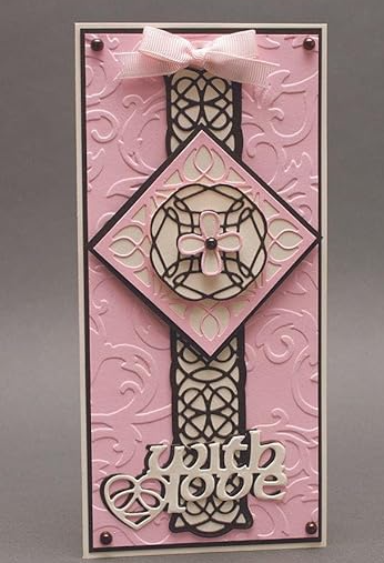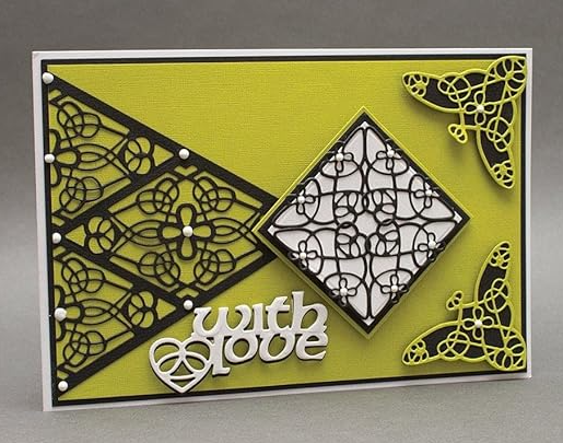This versatile 2-piece set features beautifully designed dies that cut stunning Celtic cross shapes and patchwork-style elements, perfect for card making, scrapbooking pages, journals, and more. Crafted for precision, these high-quality dies create embellishments measuring up to 3.05"x3.05" with clean, crisp results every time. Simply place the die and your chosen cardstock or paper in your die-cutting machine for effortless cutting, no tedious trimming required. Use with Big Shot or any die cutting machine. Whether you use the full layered design or select individual elements for accents, these dies offer endless creative possibilities with their intertwining and textured patterns. Add timeless elegance and intricate detail to your projects with the Celtic Cross Patchwork Die Set.