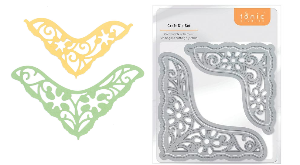 This 4-piece set includes 2 beautifully detailed daisy corner dies along with decorative frame dies, perfect for framing designs or enhancing corners on card making, scrapbooking pages, journals, and more. The largest die measures 3.5"x3.5" and delivers crisp, intricate cuts every time. A charming and versatile set for adding a soft, floral touch to any papercraft project. Use with Big Shot or any die cutting machine.