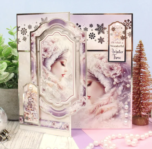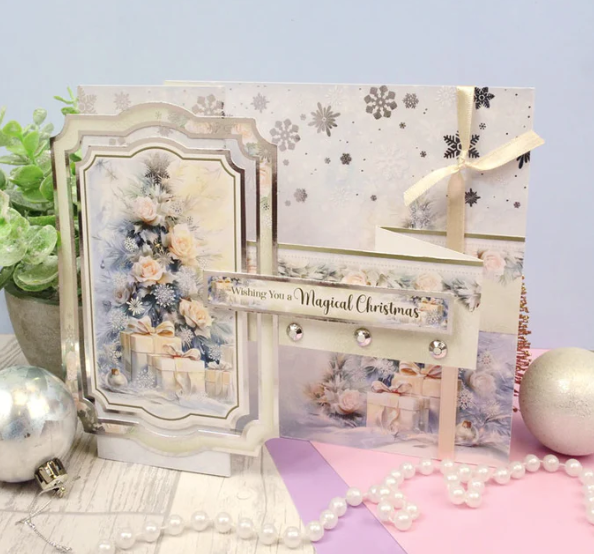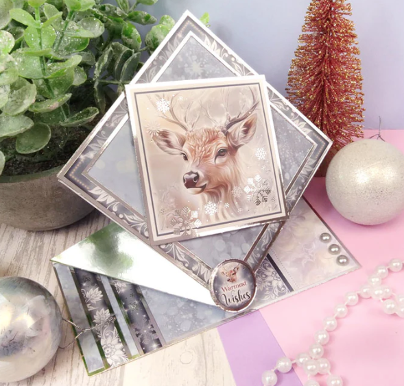This deluxe papercrafting kit includes 8 topper sets, each featuring a foiled and die-cut A4 topper sheet, a printed cardstock, and a foiled cardstock. With a gentle palette of icy blues, blush pinks, and frosted neutrals, the artwork evokes peaceful snowfall, graceful deer, cozy cottages, and festive florals. Every element is printed on Hunkydory’s signature Adorable Scorable cardstock for a professional finish and effortless crafting.