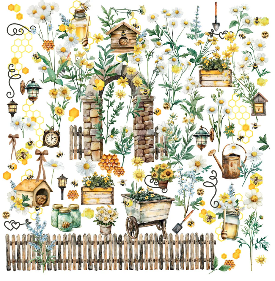 Add instant charm and dimension with the Botanical Buzz Laser Cuts by 49 and Market. This set includes 117 intricately cut pieces featuring bees, florals, labels, and vintage accents. Designed to coordinate seamlessly with Botanical Buzz 6x8 Papers. Perfect for card making, junk journals and other papercrafts.
