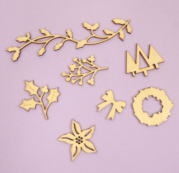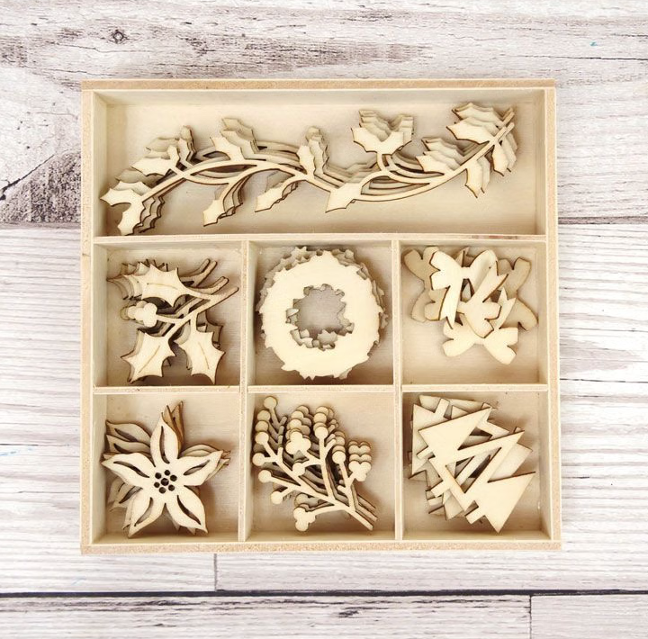 🌿 Winter Trimmings Laser Cut Wooden Shapes – 35 Pieces by Hunkydory!