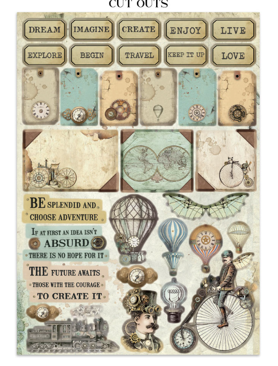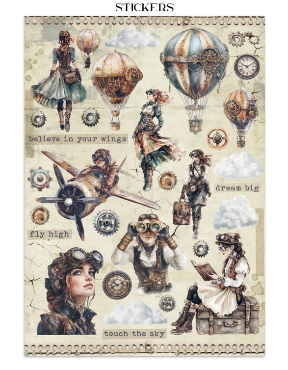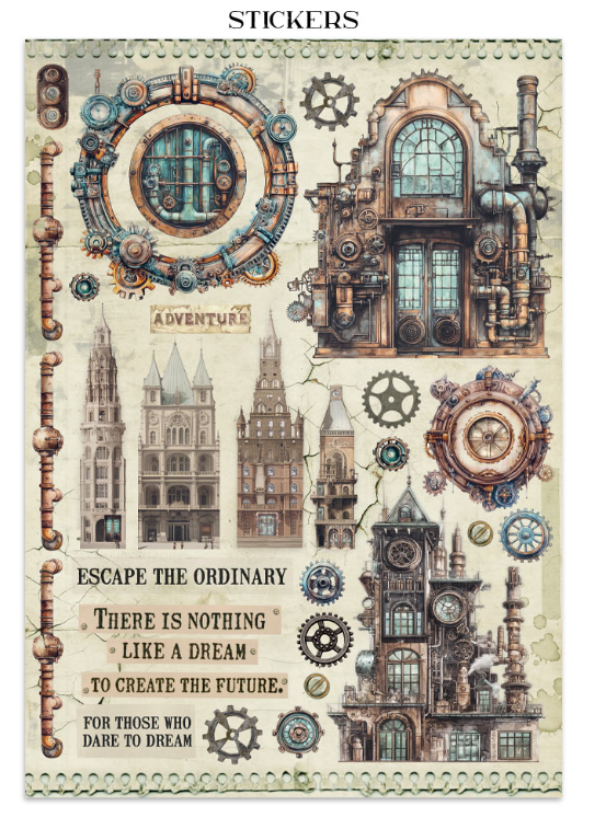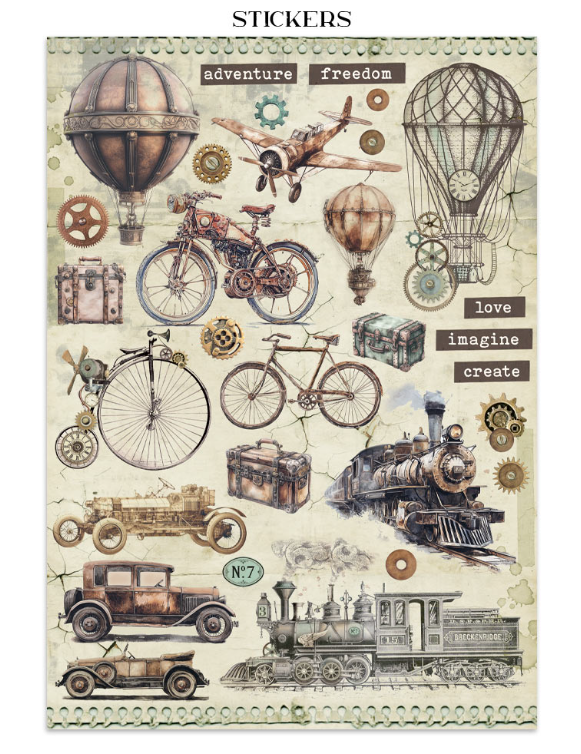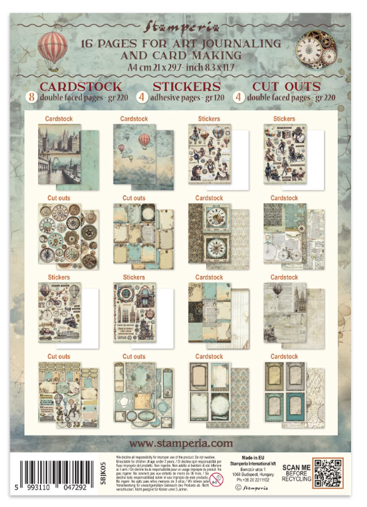 Embark on a steampunk-inspired creative journey with the Stamperia Voyages Fantastiques Junk Journal. This 8.3"x11.7" (A4) journal includes richly illustrated cardstock, stickers, and cut-outs perfect for card making, junk journaling, scrapbooking, and mixed media.