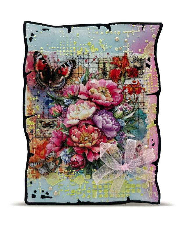 Designed for layering and texture play, Petals Kiss features delicate floral motifs in blush and cream tones. Designed to create a picture when placed in a layer. Perfect for card making, scrapbooking, and mixed media projects that need a touch of gentle charm.