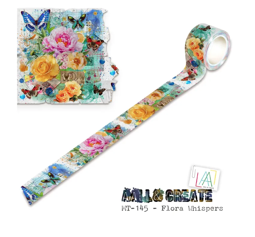 This washi tape features hand-drawn botanical elements in muted greens and lavenders, perfect for layering into nature-inspired spreads. A gentle accent for journaling, scrapbooking, and mixed media art. Place strips of this washi in a row and watch the scene take shape!