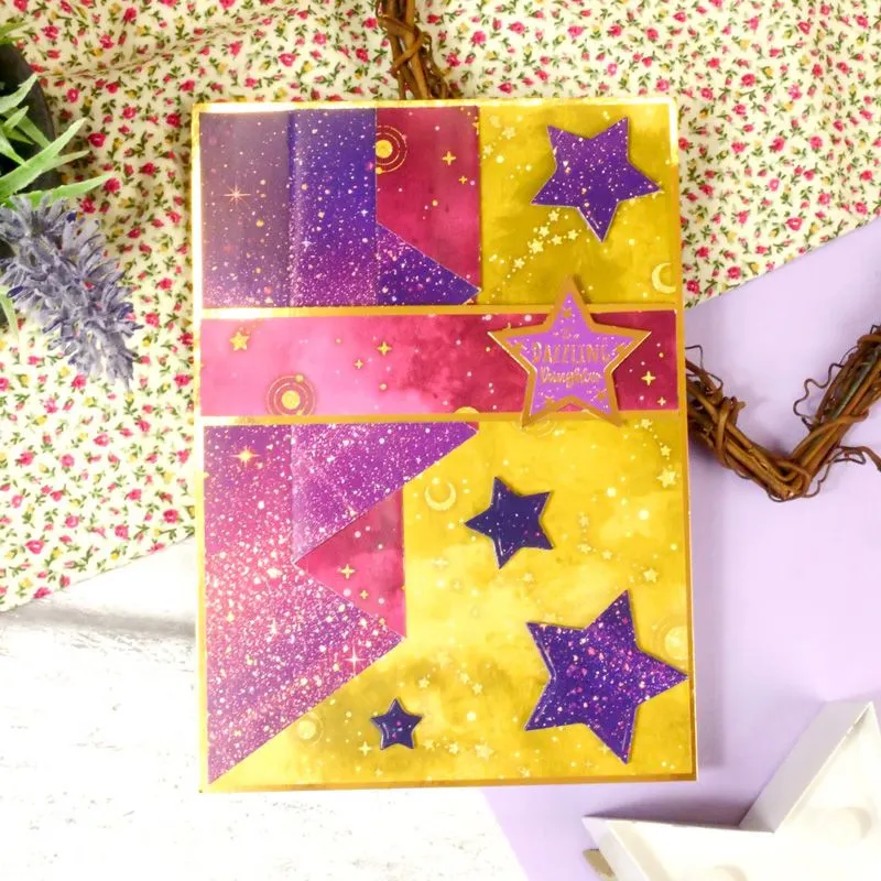 The Celestial Dreams & Magical Constellations Duo Design Paper Pad is like having two coordinated paper pads in one. One side features dreamy skies and galaxy-inspired artwork in rich jewel tones with sparkling stars, speckles, and swirling cosmic details. Flip the sheets to reveal complementary constellation-style patterns in matching colours, perfect for fantasy, astrology, and star sign themed makes all year round.