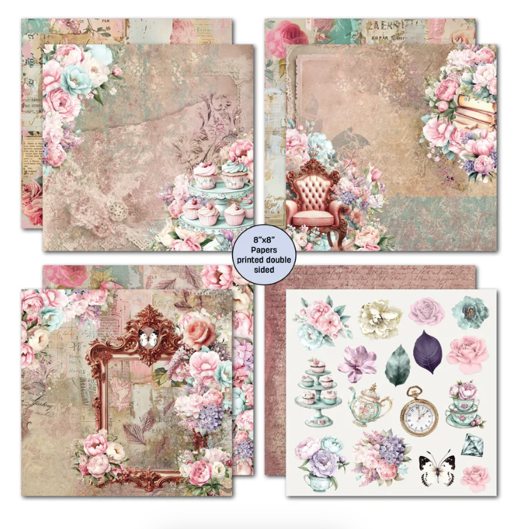 Each sheet is printed on high-quality cardstock with coordinating motifs that blend soft watercolor textures, delicate lace, and cozy cottage vibes. Whether you're crafting a heartfelt card or building a layered layout, Positivi-Tea brings a gentle joy to every page.