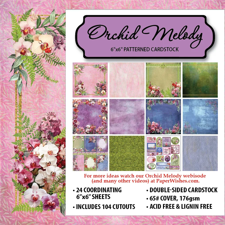 Bring a touch of soft elegance to your handmade projects with the Orchid Melody 6"x6" Patterned Cardstock Collection! This beautiful assortment features lush florals, watercolor textures, and rich jewel‑tone backgrounds—perfect for cardmaking, scrapbooking, journals, mixed media, and more.
