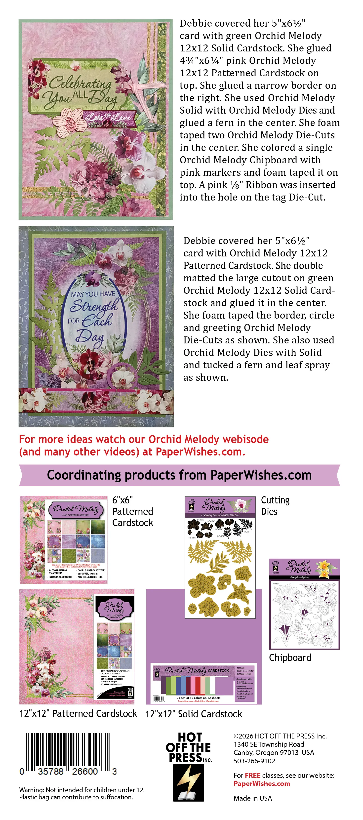Add beautifully coordinated greetings and decorative accents to your handmade projects with the Orchid Melody Die-Cuts by Hot Off The Press. These 31 ready-to-use pieces feature rich floral artwork, soft blended backgrounds, and elegant shapes that make cardmaking and scrapbooking effortless and polished.