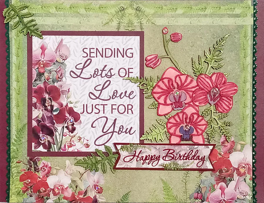 What's Inside8 laser‑cut chipboard pieces featuring orchids, leaves, and floral clusters