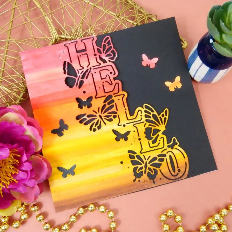 The design features the word ‘Hello’ in a classic serif font, surrounded by a charming arrangement of butterflies and adorned with delicate dots and sparkle. Perfect for everyday cards, friendship notes, and cheerful greetings, this versatile die helps you craft stunning, professional-looking designs with ease.
