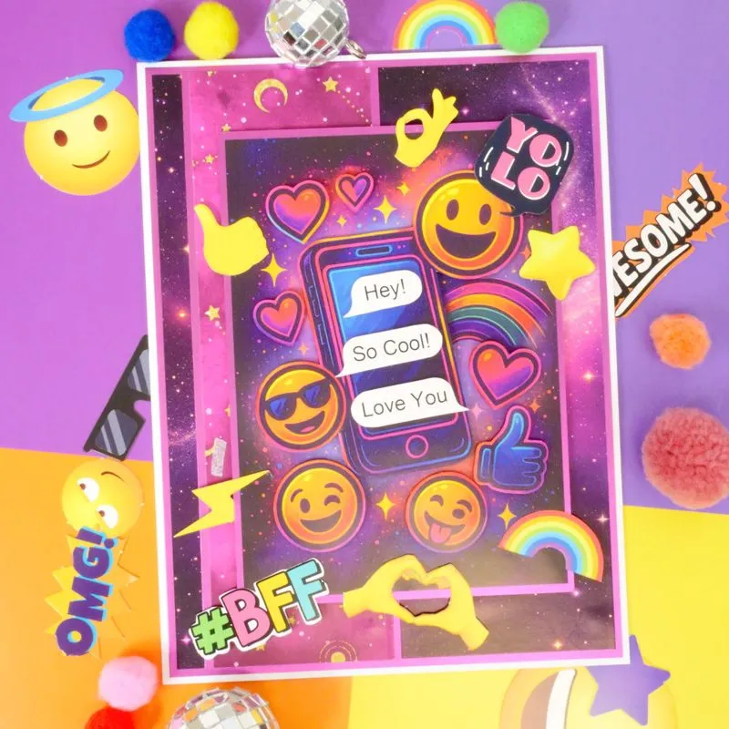 The Awesome Icons pad is inspired by all your favourite emoticons and fun touches from phone messages. Featuring hand signs, presents, hearts, stars, pets, and trendy comic-style abbreviations, plus conversational sentiments, this pad is bursting with personality. With 90 unique designs and 5 of each included, you’ll enjoy an incredible 450 individual die-cut elements—perfect for every occasion and recipient!