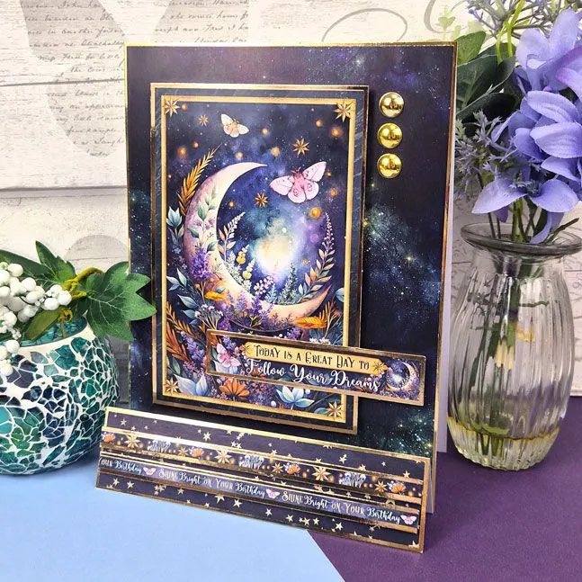 Inside the pad are 36 heavyweight sheets, featuring 12 unique designs with 3 sheets of each. Every page is beautifully enhanced with rich gold foil, delivering Hunkydory’s signature luxury finish. Each sheet includes a super-sized central topper along with perfectly co-ordinated sentiments and decorative borders, making it easy to create cards with maximum impact and minimal effort.