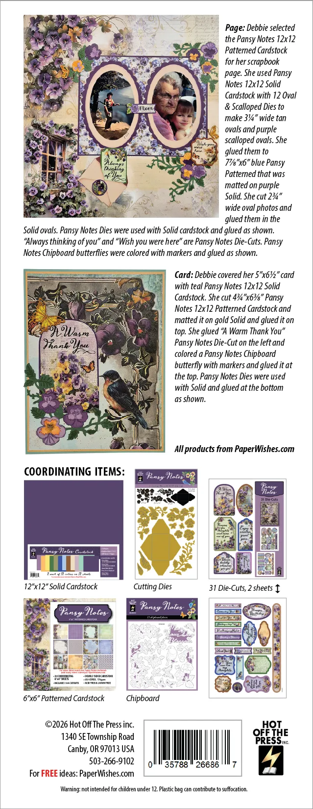 Pansy Notes 12"x12" Patterned Cardstock by Hot Off The Press