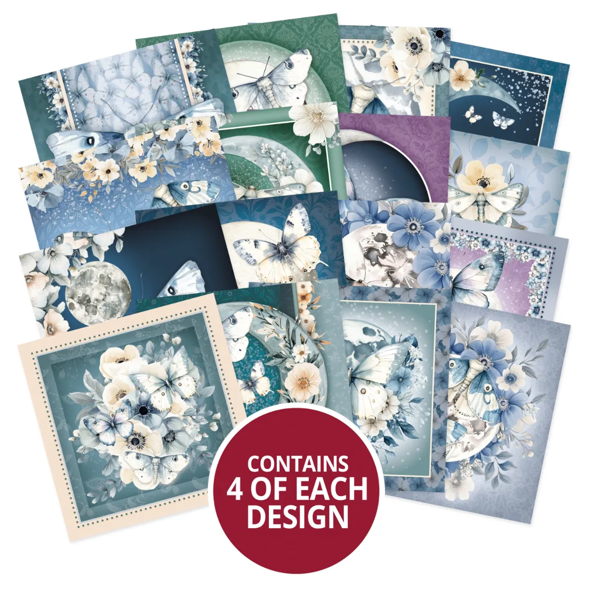 This beautiful square pocket pad includes 16 unique designs featuring fluttering butterflies and moths illuminated by soft moonlight, paired with gentle peach and blue floral accents. Each page is crafted on heavyweight 150gsm uncoated paper that is easy to cut, layer, embellish, and personalize. Ideal for fast makes, decoupage, toppers, scrapbooks, and more.