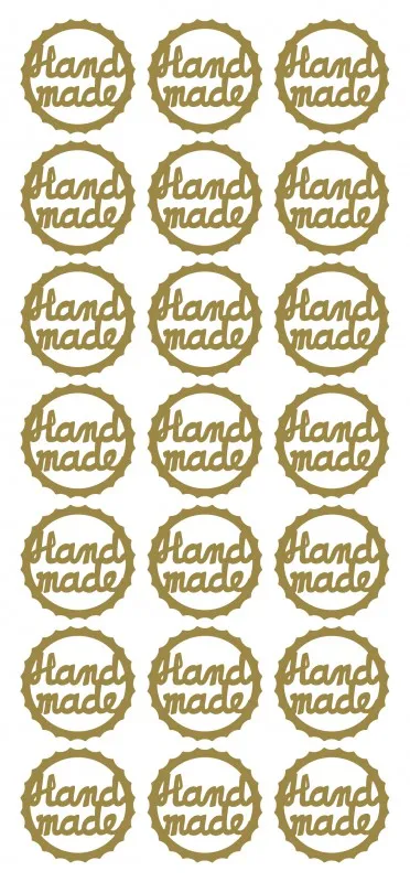 Each 1" wide Dazzles™ sticker features the phrase 'hand made' in stylish cursive script, framed by a scalloped edge in a gold finish. Ideal for adding a a special touch to your handmade cards, gifts, and DIY crafts. Paper Wishes exclusive!