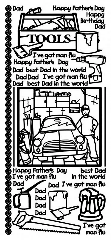 Celebrate dads, DIY lovers, and garage enthusiasts with this bold, masculine-themed Dazzles™ sticker sheet. Perfect for handmade Father’s Day cards, birthday cards, scrapbooking pages, journals, and gift projects, this sheet features 32 pieces including classic workshop elements, a detailed garage scene, tool icons, and a selection of fun and heartfelt sentiments.
