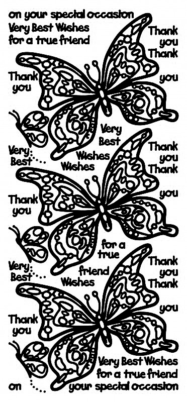 Celebrate friendship, gratitude, and special moments with this beautifully expressive butterfly-themed Dazzles™ sticker sheet.22 pieces including elegant butterflies surrounded by heartfelt sentiments such as “Thank You,” “Very Best Wishes,” and “For a true friend,” this design is perfect for meaningful cards, scrapbook pages, journals, and handmade gifts.