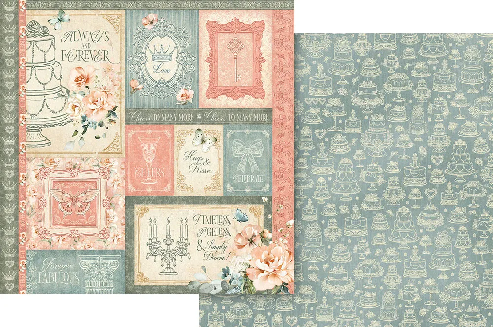 A refined palette of regency blue, muted pink, luxurious green, and glorious gold creates a sophisticated foundation, while charming imagery of bows, cakes, crowns, and ornate frames adds vintage appeal. Perfect for birthday keepsakes, wedding albums, heartfelt cards, and memory‑keeping projects for those you cherish most, Always & Forever is designed to help you create memories that last.