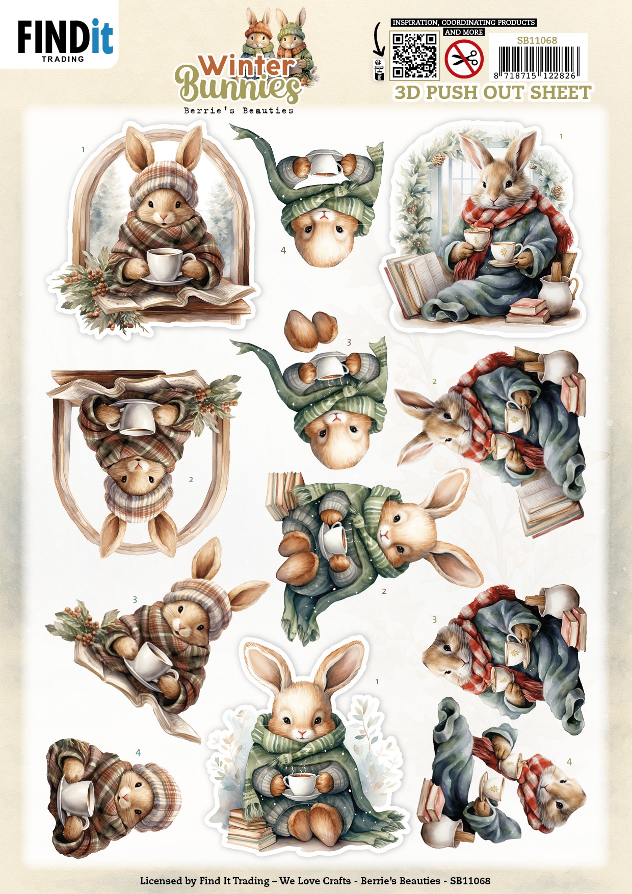 Cosy Bunnies Die-Cuts by Find It Trading feature cosy bunny characters enjoying quiet winter moments with books and warm drinks. Designed for layered crafting, each image can be cut and assembled to add depth and dimension to your handmade creations. Ideal for card making, scrapbooking, and seasonal paper crafts, this sheet brings a soft, storybook charm to winter and holiday projects. Foam tape all layers on one design or use some separately to get more of the charming designs.