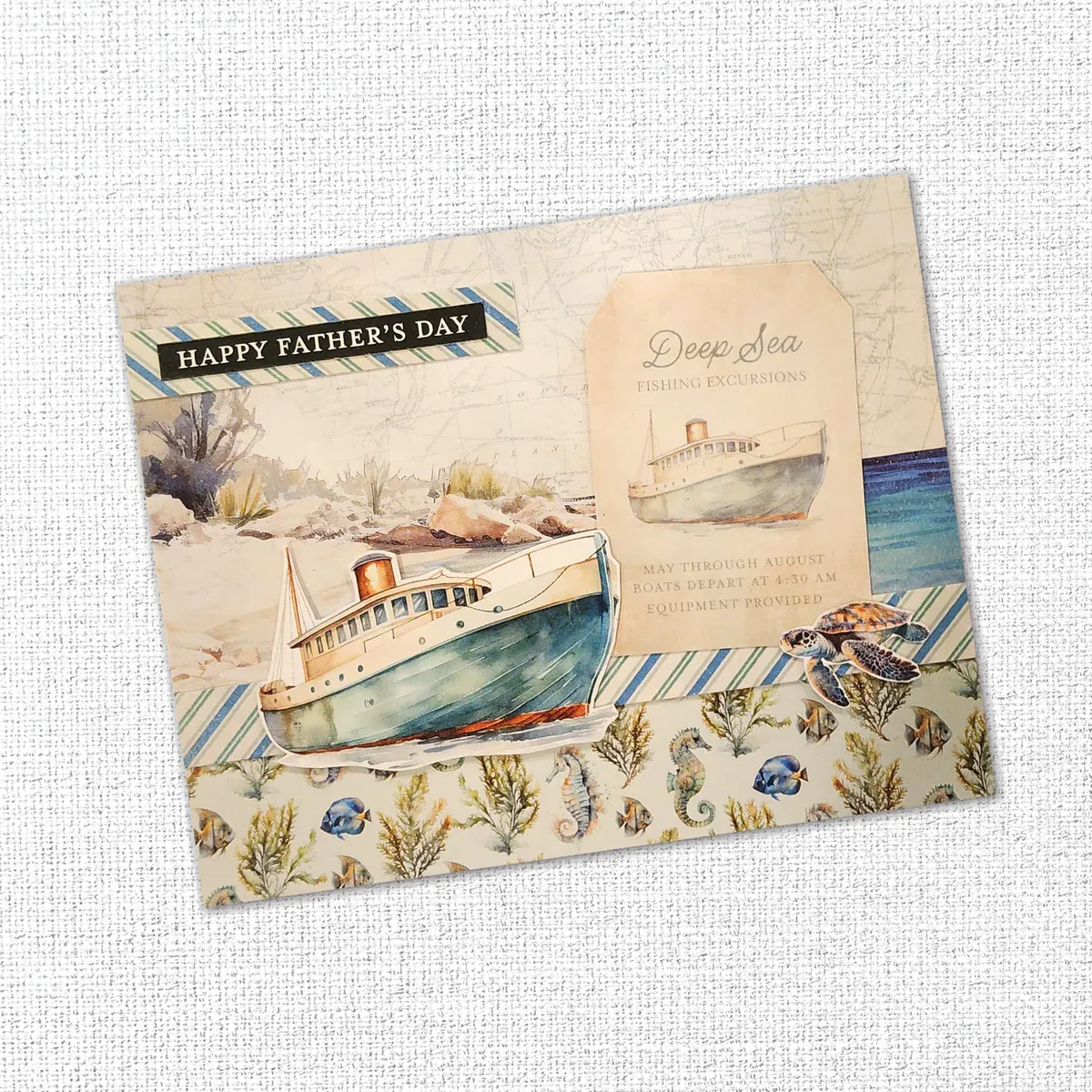The Seaside Memories Collection blends calming ocean blues and greens with beautifully detailed nautical artwork to inspire heartfelt coastal-themed crafting.