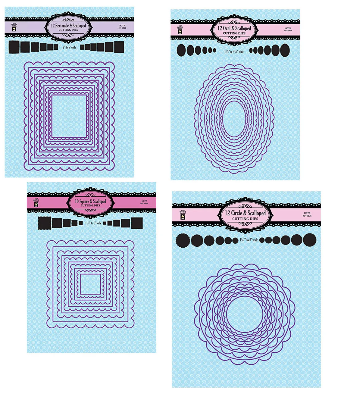 I had a set of these and then I moved. I couldn't find them. I finally bought another set and then I found my original set. I don't mind having two. I really like the scalloped and plain shapes in this set. It makes it really versatile. I use the large dies for shaped cards. I use these dies for mats and layers. It makes it very easy to have pretty cards to give to family.