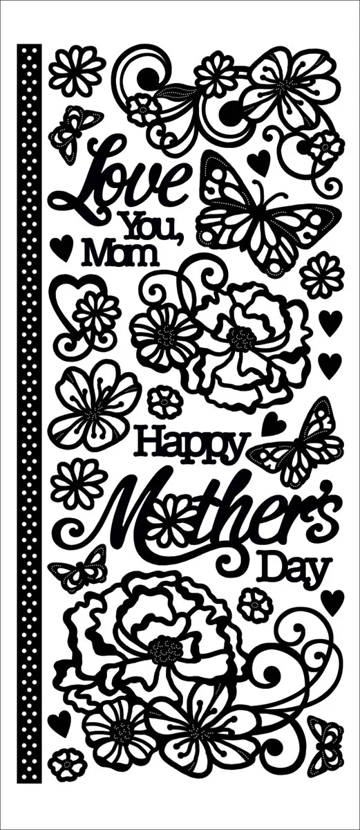 Mother’s Day Flowers Dazzles™ by Hot Off The Press features graceful bouquets, single flowers, butterflies, and heartfelt sentiments.They make card making, scrapbooking, and junk journal pages truly special. These black outline stickers look and feel like heat-embossed designs, but need no for heat or tools. Just peel and stick for professional results every time. Tip: Not just for Mother's Day but anytime you want beautiful images!